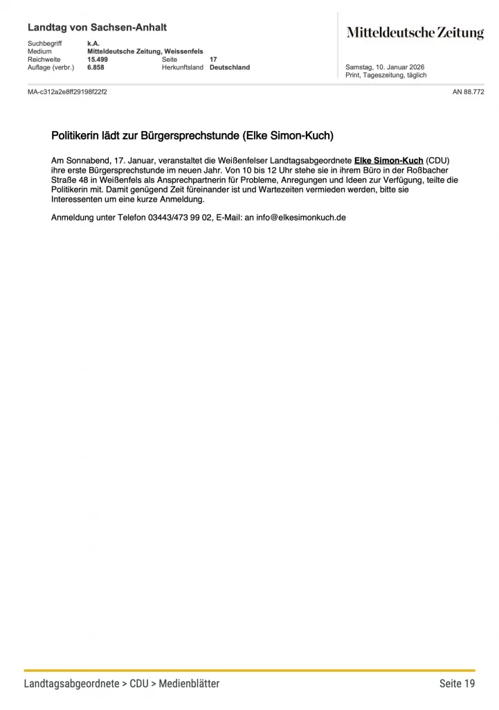 Pressespiegel vom 12.01.2026